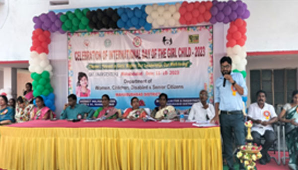 On 11 th October occasion of international girl child day, we have celebrated programme at govt junior collage for girls and conducted cultural programmes for girls and discussed about girls issues like child marriages, child labour and child sexual abuse issues and good touch and bad touch to girls and adolescence problems and taken pledge against child marriages with girls and school teachers and with all line departments.